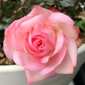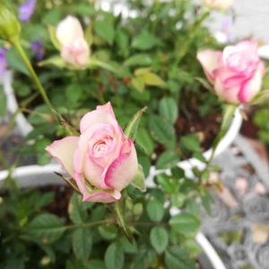 洒落た支那鉢を入手したので、ミニバラ を植え替えました