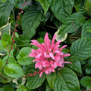 8月からの再会でした。 ミズヒキ(赤)と一緒に咲いていましたよ🤗 ⏬️ 「サンゴバナ(珊瑚花)」 キツネノマゴ科ジャステシア属の常緑小低木 原産地>南アメリカ 別名>ブラジリアン・プラム、フラミンゴプランツ、ジャコビニアなど 花言葉「華やかな恋」「揺れる心」「きらめき」「新しい始まり」など… ※タイマツバナにも似てますよね🪷