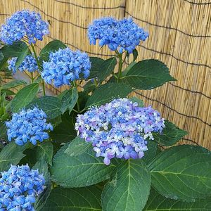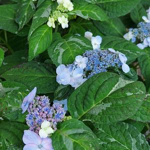 白から蟹鳥の薄い青 やがて 紅掛空色へ うっすらと 紅を滲ませる 装飾花の妙 葉は葉緑色の地に 豆青から百緑の斑入り 世界でも類をみない 日本の色です。 正確には 色の名の多さ 身近にある色 自生の色 ニュアンスの違う色 一つ一つに絶妙な名を 与え 纏い 愛でて… もっとも以前は限られた 人々のものでしたのでしょう。 下々はそんな風雅な遊びとは無縁 けれど せっかくの美しい色の名 四季のある日本 移り変わるそれ 実に その名にふさわしい色と おもわれませんか。 日本の色は美しいですね。 今日1日 お疲れ様でした。