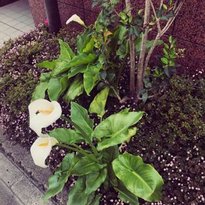 緊急事態宣言もありお稽古がまたお休みになってしまい寂しい限り。 お散歩してたらなんとカラーの地植えを発見😮 お稽古やお花屋さんでは花しか見たことがなかったので初めてカラーの葉を見たのです。 こんなふうに咲いてるんですね🥰
