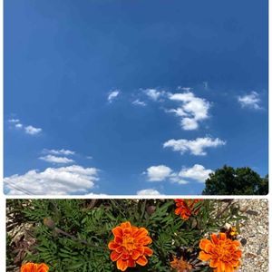 病院診察後の爽やかな夏空&病院の敷地のマリーゴールドが可愛くて🌼 血液検査の結果も良く、コロナワクチンの予約も完了しました😆🙌 とりあえずひと安心❤ 処方箋受け付けにもアプリに進化✨ 自分も世の中に置いて行かれないように日々成長せねばですね😅