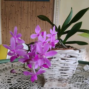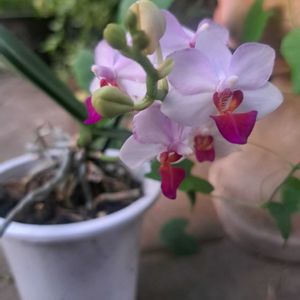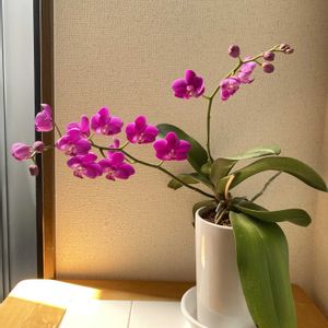 ミニ胡蝶蘭 去年9月にたくさん咲いていた 優しい藤色の胡蝶蘭 7月末に再び開花し始めて 今は7輪咲いています。 満開までもうひと息🥰✌️