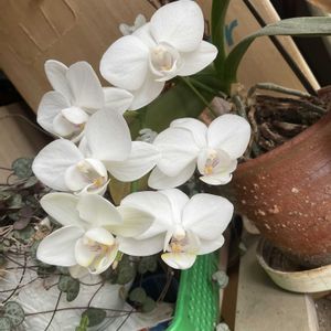 見切り品で買ったミニ 胡蝶蘭😃 育てはじめて4年目ですが初めて白も咲きました😊