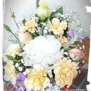 家で咲いていた花をドライフラワーにしました。 色が上手く出ませんでしたが、くすんだ感じも良しとして飾っています♡