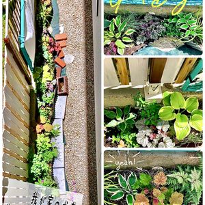 犬走りの狭い裏庭に、少しずつシェードガーデン作り中 土留のレンガをモルタルで固めて花壇作ろうと考え中ですが💦なかなかすすみません😂