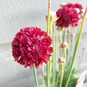 ❁. 。アルメリア’バレリーナ レッド’。.❁ アンティークカラーの アルメリア’バレリーナ レッド’ ❤️ 真っ赤ではなく くすんだカラーが とってもお洒落◌̥*⃝ 小花がたくさん集まって ぽんぽんのような形をしています🍒 すらーっと伸びた花首に 個性的なお花で 寄せ植えのアクセントとしても◎ 蕾は白くまん丸な形をしていて 赤とのコントラストが とっても可愛い植物です✨ 寒さに強く丈夫な植物なので 初心者の方にもおすすめです🌱 *育て方* 日当たりのいい場所を好みます。 水やりは土の表面が乾いたらあげてください。