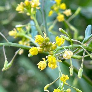 スカシタゴボウ 本日道端畑の端っこにて、黄色いナズナのようなお花を見つけました💡 キレハイヌガラシも候補に上がり、なかなか区別が難しいようでしたが 「キレハイヌガラシの果実は細長く、柄の長さと同じかそれよりも長く、スカシタゴボウは果実に膨らみを持ち、柄の長さは果実よりも長い」 という比較情報をみつけ、スカシタゴボウと判断しました☺️