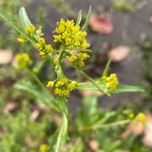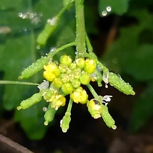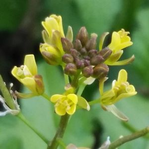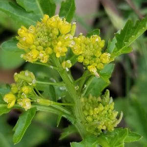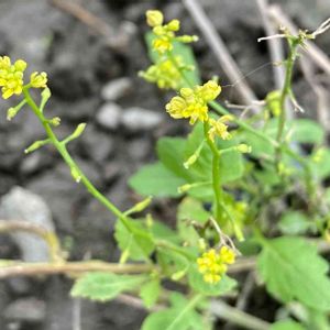散歩の途中🚶♂️ 水田の畔など湿った場所に生えています😂💦 花も小さく、少し緑がかった黄色で地味に咲いていました🤣🥰 枝先に花径2.5-3㎜で黄色の十字状花を多数つけます。果実は長さ3-7㎜の単核花。よく似たイヌカラシは果実が1.5㎝と大きい🤗 アブラナ科イヌカラシ属 越年草 透田牛蒡 原産地:日本在来種 開花期:4-7月