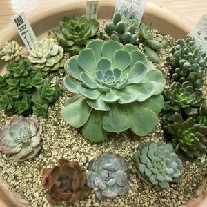 秋の日の多肉祭り✨ 本日はお日柄も良く、多肉植物を爆買いしました😆🎶 都内池袋の鶴仙園にて〜 本日お迎えしたのは、1番てっぺんから時計回りで ・エケベリア マカベアナ錦 錦好きです〜😍笑 実は、子株も出ています🙄 少し窮屈そうなので、明日にでも植え替えようかなと思ってます🤔 ・アエオニウム 明鏡錦 変わった形してるなぁと思って、お店の人に聞いてみたら、なんとアエオニウムΣ(゚Д゚) アエオニウムと言ったら、黒法師的な姿を想像してましたが、ギュイーンと惹かれてしまいました😍笑 どんな姿で育っていくのか楽しみです✨ 王道ではないかもですが、初アエオニウムです笑 ・ハオルチア 雪うさぎ 毛蟹の交配種とのこと。カワイイ😍一目惚れです💕 真ん中いって ・ハオルチアの交配種で ♀ウイミー45×♂シルバニアとのこと 前に迎え入れたドラゴンボール見て、丸っこい感じも好きかも😍って 今回迎え入れた中で1番高かったですカタ((((꒪꒫꒪ ))))カタ笑 左下へ ・クラッスラ 稚児姿 ムチッとした感じがイイ👍 ・クラッスラ 殿 この出で立ちカッコイイじゃん! 要はみんな一目惚れです、はい ( ,,ÒωÓ,, ) 財布忘れて、ヒヤヒヤしてたことは秘密です🤫笑