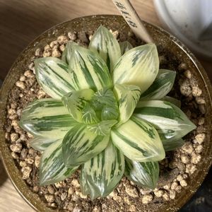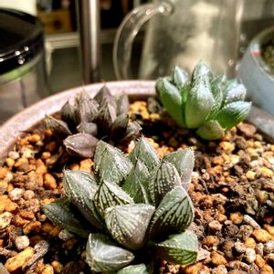 寒い+雨ということで 今日は出かけずに室内の植物たちのお世話と 少しお掃除をしてました🧹 ハオルチアにもいろんな種類がありますが、錦模様が入ったものも欲しくなりますね😍✨ Pic.1, 2 福美人錦 葉のグリーンとややクリーム色を帯びた模様、葉先の窓の透明感に撃たれました( ゚∀゚):∵グハッ!!笑 実はこの子に合わせたガラス鉢も気に入ってます😍 そして、ハオルチアで埋め尽くされたリビングの棚です😁 育成ライトを置くと、 せっかく光が届くんだし、置けるよね( º▽º )💡 ってなって、あれこれしてたら棚を埋め尽くしました🤣 まだ懲りてないですけど( -`ω-)✧ドヤッ
