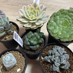 今日は1日晴れて、気温も暖かく、風邪も治ったし、 昨日組み立てた簡易ハウスの置き場にスペースが…🚶♀➡ ということで、湧いて出てきた悪い虫さんの誘惑に駆られて、多肉ちゃんたちをお迎えに🌵🪴🎶 Pic.1, 2 七福神🪷 1ポット580円×3 ネットで購入したときよりだいぶ安い🙄お店の方曰く、ウチでは人気ない とか。 個人的には、推しなんだけどなぁ〜😍笑 もともと一つの鉢で単独で育てていた真ん中の子と合流。丼ぶりっぽくしていきたいです😊♪ Pic.3 予定ではなかったのに一目惚れした錦さんたち ルンヨニー錦に女雛錦 ルンヨニーさんはまだ持ってない錦✨ メビナさんみたいに群生する感じの子もはじめましてで値段も手頃とあっては、射止められました😍 会計時にお店のスタッフさんとも話が盛り上がり🤣 Pic.4 肉芽と独特の色合いのハートディライトさん✨ 前にレインドロップさんを⭐にしてしまったので、リベンジです! 今度は光具合は良くなっているはず💪 Pic.5 本当はこちらが目的のアエオニウムさんたち 黒法師は先に持ってた明鏡錦さんと合わせてみました😊 その他、ショウカさんとリバーストーン やっと王道的な感じのアエオニウムを迎えることができました*⸜(* ॑꒳ ॑*)⸝* 他にも可愛らしいエケさんたちがたくさんで、迷いに迷ってぐるぐる🌀しました😵💫笑 しばらく出かけてなかったので、楽しかったです🚶♀➡🎶笑