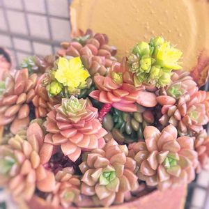 多肉のお花... ピンク色と黄色✨ トゲトゲしい琴爪菊がピンク色の花って! こりゃまた可愛いね〜٩꒰⍢ ꒱۶ なかなかパッカン開いているところが見られない私。 もっとたくさん咲いたらもっと可愛いことでしょう✨でももう蕾は見当たらないな......と ちょっとギュウギュウしているので後で植替えしてあげたいな... 後〜で😌