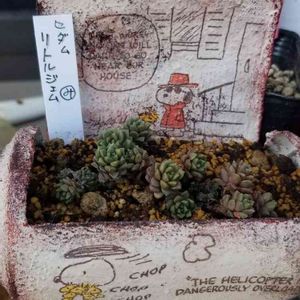 ベランダに降り込んだ雨のお陰で、リトルジェムがモリッてた~🌱🌱🌱 *さなぼてんチャン作;ねねくん鉢 *みんとぐりーんサン作;NENEピック *45サン作;真四角くん