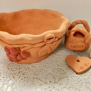 こんにちは😃 昨日はバービーさんとtsukiさんのテラコッタ教室に行ってきました🎶💕💕 前回の作品が仕上がり思ったより良くできでいたのでとっても嬉しいです😆💕 今回も夢中になって時間を忘れて作ってきました🎶 tsukiさんには長い時間お付き合いしていただき丁寧なご指導いただき本当にありがとうございました🤗 とっても楽しい時間でした😆🎶 作品出来てくるのまた楽しみにしています😄✌️