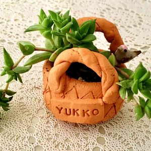 おはようございます😃 tsukiさんのテラコッタ教室で作った作品に自宅にあった多肉ちゃん植えてみました😄✌️