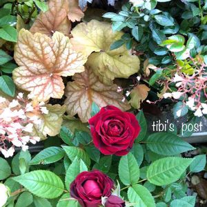ごちゃごちゃゾーンで 咲いてる紅一点🌹?三点? ディープレッドコルダナ 名前どおりの深い赤に 惹かれて✨✨ もう少し咲きすすむと 美人さんから可愛いコ になるんですよ❤️