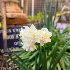 清楚な雰囲気の八重咲き水仙です🌼 庭の隅っこに雑草と混じって咲いてたのを 球根を掘り起こして秋に花壇に移植しました✨✨ 春の花壇を彩ってくれてます✧︎◝︎(*´꒳`*)◜︎✧︎˖