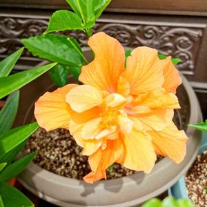 今年初♫お迎えした 八重咲きのハイビスカス🌺 咲きました😉 八重咲きのハイビスカスは、初めて育てています。 かなり華やかですね✨ 5〜6年もののハイビスカス🌺で冬越し成功した子たちは強剪定したので、葉っぱがだんだん増えてきましたが、まだ蕾ついてません。鉢替えして肥料与えて育成中。その子達はたぶん晩夏か秋くらいの開花かなー。
