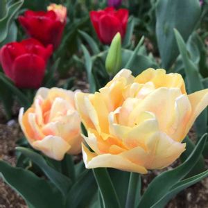 春ですね〜🎶 八重咲きチューリップ🌷 クリーム色にオレンジ色が少し混ざってます🌷 春と言えば…… ♪︎♫︎♬︎♩︎♩︎♪︎♬︎♫︎♪︎♩︎♩︎♫︎♬︎♫︎ 春という字は 三人の日と書きます あなたと私と そして誰の日? あなたが好きになる前に ちょっと愛した彼かしら 会ってみたいな 久しぶり あなたも話が合うでしょう 三人そろって春の日に 三人そろって春ラ!ラ!ラ! ♪︎♫︎♬︎♩︎♩︎♪︎♬︎♫︎♪︎♩︎♩︎♫︎♬︎♫︎ 春と言えば八重歯の真子ちゃんの こんな歌があったね〜☺️🌸 この歌詞、よく見たらすんごい内容だね〜アハハヾ(≧∀≦*)ノ〃