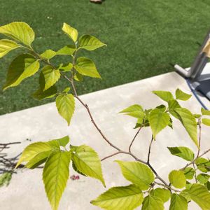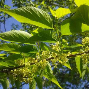 おはようございます☺ うちのムクノキです🏡 桜の花が終わりを告げる頃、今度はこちらがお花の勢いをつけてきます。 秋には青い実も黒い甘い実に変わり、小鳥たちが喜んで食べに訪れます🐦💓 すぐ横に、1本四メートルの建築資材が昔藤棚用に組んでいたのがあるので、それから推測すると、このムクノキは樹冠幅が東西・南北共に16m、樹高は7m位あり、夏には木陰を作って涼しい風を感じることの出来る、ちょっとしたオアシスになっています😊✨