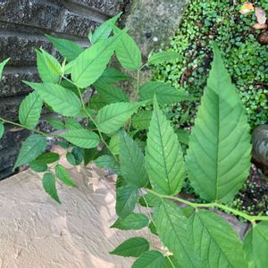 庭の端から立派になってるこの子、何者か分からなくてそのまま💦雑草と思えなくて抜けないけど、何者🤔⁉️