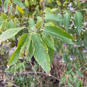 【われら樹木探検隊】 🌿ムクノキ🌿椋の木 1️⃣ 雌雄同株のムクノキ🌳 5/1にめばなを投稿したけれど、それっきりでした😅💦 これが8/31に撮った若い果実(核果)です。(別の木で撮影) 直径は7〜12ミリ。 先端には花柱が、基部には花被が残存します。 核(種子)はほぼ球形で、先端に白い種枕があるそうです。 10月頃に紫黒色から黒色に成熟します。 果肉は、干し柿に似た味で甘くて美味とか。 ムクドリ🐧がこの実を好んで食べます。 だからムクノキ⁈ なのかどうかは、知りません😅💦 2022.8.31撮影
