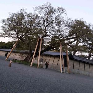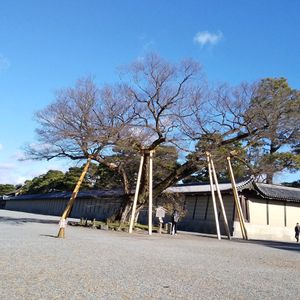 お団子に見えるウメと蜂も来ていたサクラ 塀から元気にはみ出しているムクノキ 京都府亀岡市