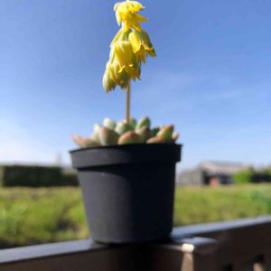 おはようございます☀ ふっくらした肉厚の葉が可愛い、パキベリアクレアに花が咲きました😊