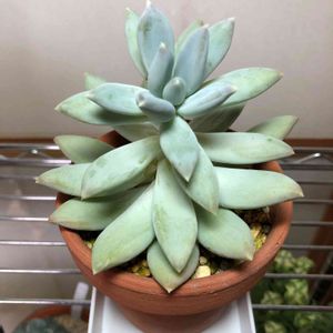 グラプトペタルム だるま姫秀麗 R5年1月18日購入 JA 姫秀麗とだるま秀麗のハイブリッドかと思ったら、姫秀麗のだるまバージョンらしい。 よく分からんけど。 花芽出てるから何かと交配したいなぁ😊 200ペソ