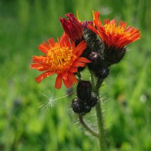 コウリンタンポポ(紅輪蒲公英) [Pilosella aurantiaca] キク科 コウリンタンポポ属 6~8月 20~50cm 帰化植物 わらわらと生えてきた