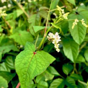 シャクチリソバ(赤地利蕎麦) タデ科ソバ属 水路で未だ咲いていました 若い実も見えます 草刈り隊が来なければ実が熟した所も見られるけど😃🎶 ソバは種を蒔くと3ヶ月で収穫できる一年草ですが こちらは多年草です🌿 実は食用にならず薬用植物として導入されました 小石川植物園から逸出した物が野原や河川敷で野生化しています😅