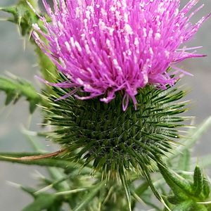 おはようございます ♡今日のお花♡アザミ♡ 👹アメリカ鬼アザミ👹 キク科アザミ属 多年草 茎だけではなく葉や花下部にも棘があります、野アザミと違い横向きか上向きに花を咲かせます。 繁殖力の強い外来植物で生体系被害防止外来種に指定されています 鋭いトゲがあるので見つけた場合、大きくなる前に抜き取ると良いとの事です