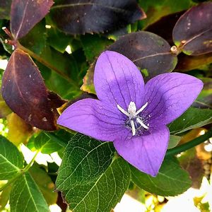 庭の鉢植えのキキョウ 🍁 😳? 数は減ったものの まだ花が咲いていますが 葉の色が赤黒くなってきました😳 黄色になるものもあるようですが これも紅葉🍁?でしょうか😳?