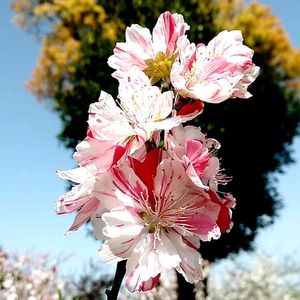 地元の公園のハナモモ 😳 🍑 白 赤 ピンク ミックスと 色々な色の花桃がある公園です 😓 モモ ハ ナリマセン 少し満開を過ぎた感じです