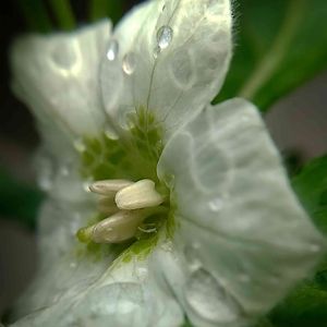 庭の鉢植えのホオズキ(鬼灯)の花 🌼 (マクロ撮影) 😳☔ 🏮 実がなる時期も もう終わりですが 雨☔に濡れて花が咲いています😳 赤い実とは対照的な 綺麗な真っ白の花です😌 🍀みどりのまとめ🍀に 「白白白🌼しろい 花花📱」 「マクロ撮影📱の世界🔎」 「植物🌿と水滴💧の共演」 を投稿しています よろしければ ご覧ください😌🎩