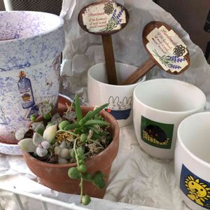* こんにちは^^ 今日はお休みだったので、早速リメ鉢作り( ˊᵕˋ ) 前回作った初めてのリメ鉢にエイジングとラベルを追加して、新しいリメ鉢を2つ作りました♩ 今日はペンキに石膏を混ぜてボコボコさせたり、ラベルはコーヒー染めしたりと色んなことにチャレンジ!とっても楽しかったです♪( ◜௰◝و(و " 濃い方の缶と鉢は、最近多肉の魅力に取り憑かれてしまったお友達へのプレゼント🎁何を植えてくれるかな〜♡ とっても楽しみです(*´꒳`∩) 喜んでくれますように○° * *