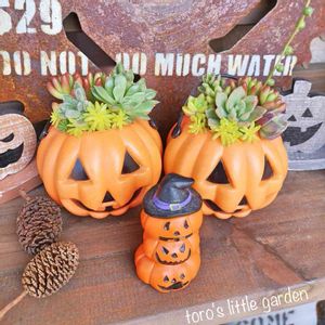 去年は何もしなかったハロウィン🎃 今年は少し参加してみようと、こんな寄せ植え作りました❤️ ダイソーの4個セットでミカンネットに入った小さなプラ容器。 器なら何でも植えれる多肉ちゃんのいいところ( ´∀` )b あとの🎃も100均で買ったオーナメントです(o^-^o) 使った多肉 左 虹の玉 オリビア 多分錦晃星 多分黄金細葉万年草 右 マッコス インディカ ホワイトストーンクロプ 虹の玉 ジョイスツーロ 多分黄金細葉万年草
