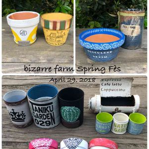 bizarre farm spring Fès③ リメ缶&リメ鉢の戦利品✨ 中には「試作品、ちょっと失敗作」コーナーで300円のお値打ち品もあり♡ 黄色いワーゲン鉢は、お友達からのプレゼントです♡