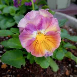 ❁︎寄せ植えの中より❁︎ (❁︎3~4㌢程) それぞれ微妙に色合いが 違う フリフリのviola 4株使用 植えたばかりで あっち 向いてたり こっち向いてたり👉🏻👈🏻💦