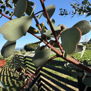 今日のお花 ユーカリ 姉に去年苗でもらって、育ててますが、どんどん大きくなります☺️ ハートリーフのユーカリ・ウェブステリアナ 選定した枝はアレンジメントの☘️🌿に使ったりして活してます☺️