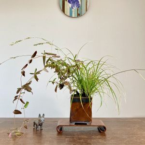 カンスゲとスイカズラの寄せ植えです。秋の始まりとともにカンスゲの花穂が伸びて来ました。 This is a mixed planting of sedge and honeysuckle. With the onset of autumn, the sedge flower spikes have begun to grow. 🌾