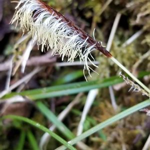 お出かけ先。 カンスゲ でしょうか? バイカオウレンの群生を探しに行った溪谷にたくさんありました。歯ブラシみたいです。