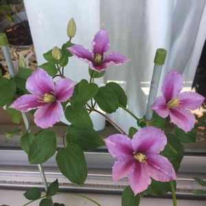 クレマチスピルー💜花をつけてからはツルが止まったまま👀花が終わったらまたのびるのかな?