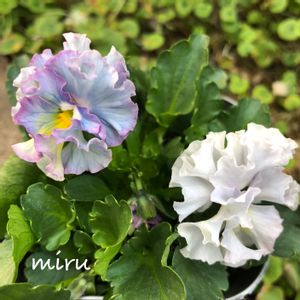 連投ですいません。💦 むらかみ農園さんのオリジナルのビオラ 少し透明感のあるうす紫とクシュクシュの 白い花が同居してます。😊 なんとも言えない色です。(*˙꒳˙*)