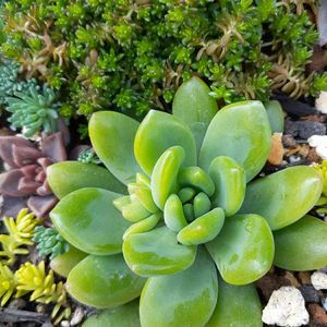 暖かい一日になりますね😊 春っぽい多肉さんをパチリ🎵🌷 南十字星⭐️さん春萌さんは花芽がチラリ(・Д・)✴︎この前植え替えしたセダムさんの寄せ植え😍乙女心さんが埋もれそう😅 飲み込まれそうなら救出しなきゃ💦 名前分からない子、つぶっぽい多肉さん? 緑の芽がいっぱい🌱春だね〜🌸😆