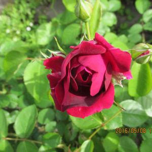 開きかけのウィリアムシェークスピア2000🌹🌹 深いクリムゾンレッドが素敵なバラです❣️ これから沢山咲いてくれることを期待だわ🥰👏💕