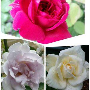 鮮やかな赤から深いボルドーに咲きすすむ ウイリアムシェークスピア2000の三形態☺️と 優しいクリーム色のチャイコフスキー♬