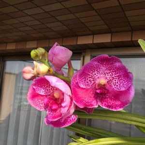もう一つのバンダ、開花始まりました。 花数が多く蕾入れて八輪、満開時は期待できそうです😊 V. Doctor Anek Bai
