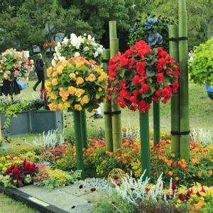日比谷公園ガーデニングショー 2020東京オリンピックの五輪をあしらった5色の飾り。 📷 2018.10.27