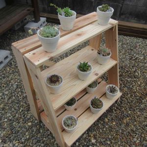 多肉関連の作業スペースを作ってみた! 横長の割りに中心の支えがないから耐久面が不安。 総額3000円以内で出来ました\(^o^)/ ・すのこ ¥1166 ・角材×10 ¥1600(くらい) ・祖父の落としていったネジ ¥0